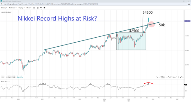 Nikkei in Overbought Zone But Still Holding Line