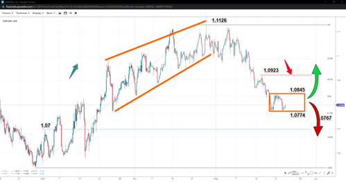 The FOMC minutes, due to be released later today, could shed light on whether another rate hike is coming despite three-quarters of traders expecting a pause. The market appears to be pricing in an expectation that the Fed will hold steady, but if the minutes heavily imply another rate hike is coming, the Euro may struggle against a strengthening dollar due to higher yields. Traders are interested in the tightening positioning of each FOMC member as recent comments have been more on the hawkish side.