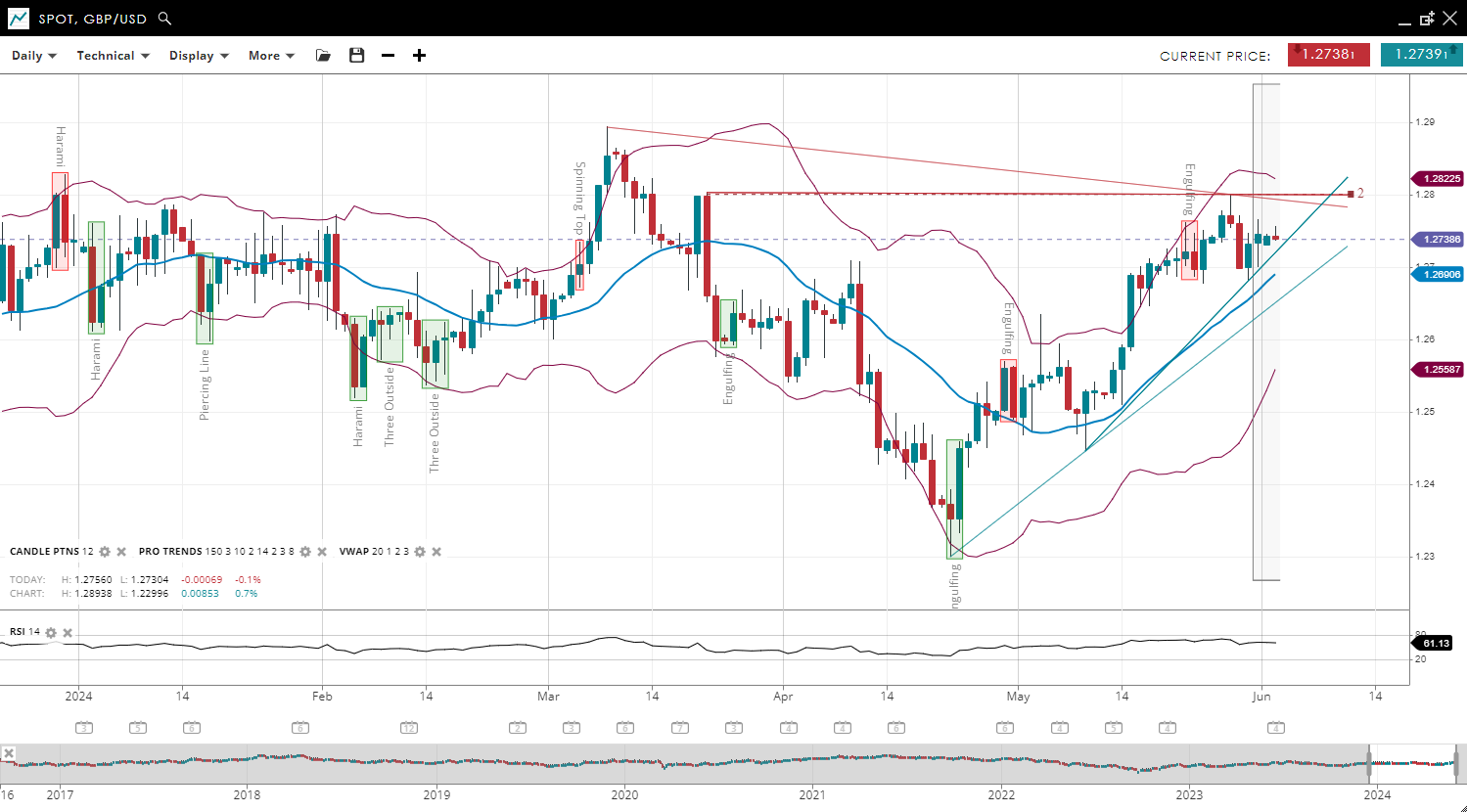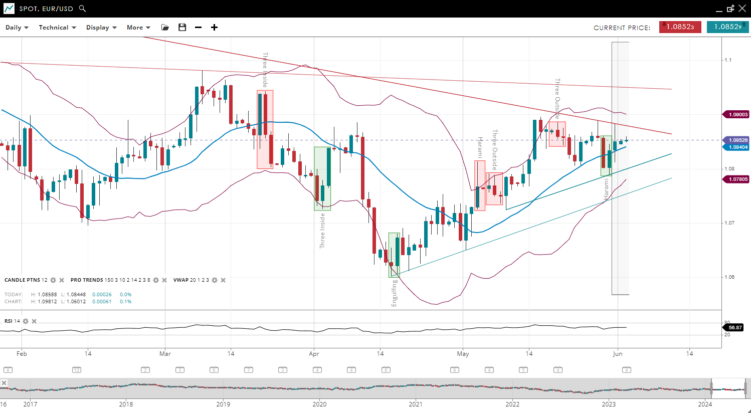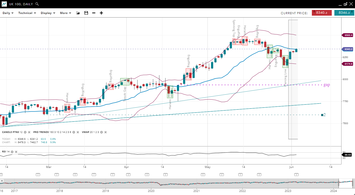 NOTE: These charts use the ‘Pro Trading Tools’ available on the SpreadEx trading platform. To use them, log in to your  and click ‘Technical’ from the menu on any chart.