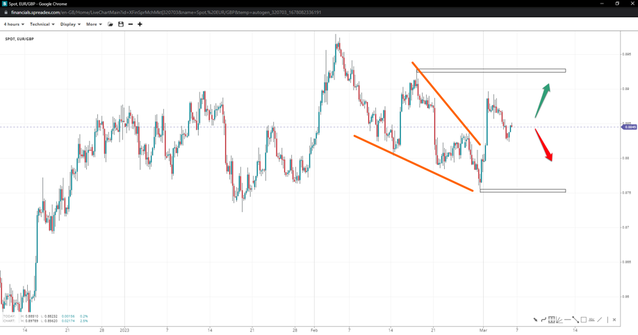 USD/CAD seems to be nearing the completion of a triangle pattern, invalidated under 1.3534 and confirmed above 1.3665. In the former case, 1.3473 is the next support. As the pair remains impulsive upwardly, the correction could manifest into a measured-move leg upwards of 1.3700.
