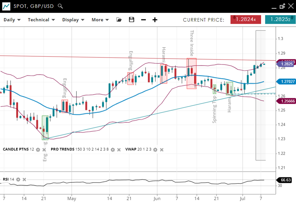 NOTE: These charts use the ‘Pro Trading Tools’ available on the SpreadEx trading platform. To use them, log in to your and click ‘Technical’ from the menu on any chart.