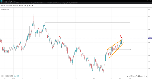 Gold extended its wedge formation to 1882, which appears to have put a top in, given the immediate rejection at the June ‘22 high. 1845 is critical retest support, otherwise, losses could extend towards the 1800 handle. If the swing low offers a rejection instead, or there will be no pressure at the peak, prices of gold could head to 1900 next, with chances of breaking past and towards the 2000 psychological resistance slim unless an interim swing offers a breather.
