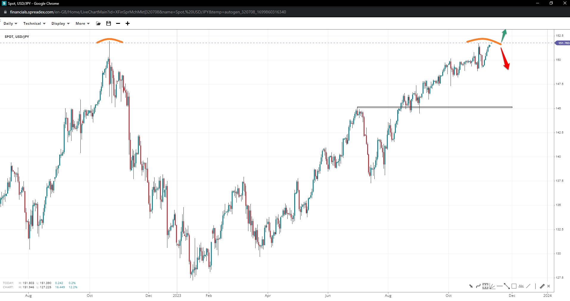 USD/JPY (1 day)