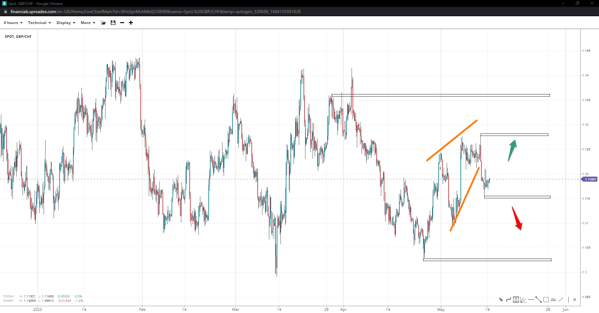 The GBP/CHF pair has completed a rising wedge, opening the door to fresh highs toward 1.1365 in case of a 1.1278 breakout. A deeper correction might be seen, though, with 1.1027 acting as major support should the low of 1.1150 weakens.