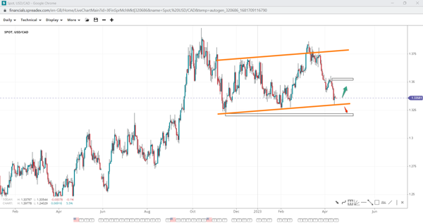 Loonie appears to be targeting the flag pattern low under $1.33, increasing the chances of a breakdown towards $1.3260 and $1.3227. Surging past $1.34 may offer bullish respite, with the next resistance settled by $1.3505.