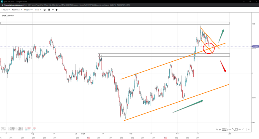 London gas prices seem to be finishing the completion of the 4th leg of a symmetrical triangle unless it slides to $910 for a descending variation or forms a pennant instead. If prices rise, the likelihood of moving closer to $1100 will increase, with the trendline being a potential rejection level and $1000 an interim resistance.