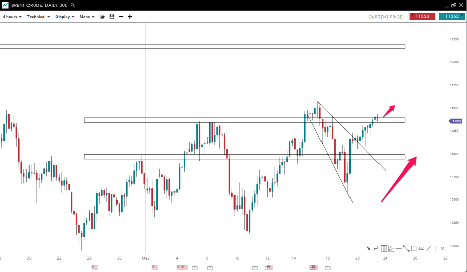 Brent Crude oil has breached the bullish wedge formation to the upside but it is facing strong resistance around the 113 mark. If the price succeeds to break this zone and close above it, we can see a retest of the 121 mark.