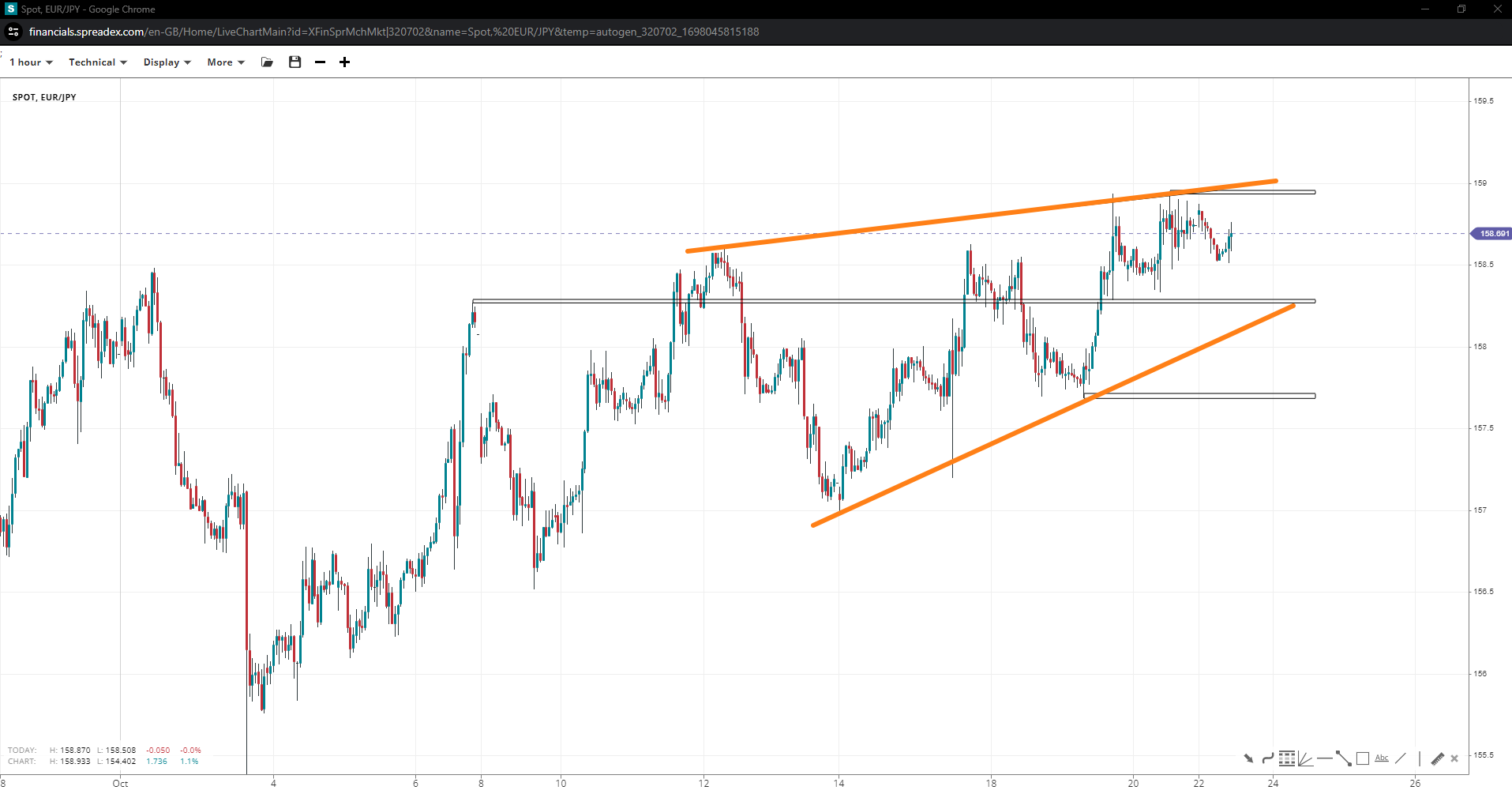 EUR/JPY (1 hour)