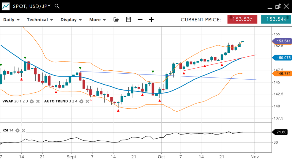 | USD/JPY | Bullish | Impulsive | 153.54 | 150.07 | 146.77 | 153.50 | 71 |
