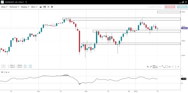 The index is consolidating after a test of the record high formed in November. For now, the uptrend is intact as the price makes higher lows and the RSI is above 50.