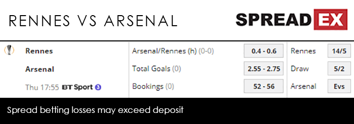Arsenal are in 5th place in the Premier League, and would be leapfrogged by Chelsea if the Blues win their game in hand against Brighton. And though a win against United this weekend would do wonders for their top 4 chances, they’ll be riding high after their Parisian miracle. They could do, then, with having the Europa League as an alternative route into the Champions League next season. Rennes, mid-table in Ligue 1, scraped through the opening stages, losing 3 and winning 3 in a group that contained Dynamo Kiev, Astana and Jablonec. They were more confident in the last-32; though they twice gave up the lead in the 1st leg, a 3-1 win at Real Betis saw them pick up a 6-3 victory on aggregate. Though the same was said of the Gunners’ lifeless trip to BATE Borisov, the visitors should come out of France with the advantage. Spreadex are offering an Arsenal/Rennes (h) Goal Supremacy spread of 0.4-0.6 alongside a Total Goals spread of 2.55-2.75. A bit later, will Chelsea’s Maurizio Sarri continue to cling on his job with a victory against Dynamo Kiev, at 8pm on BT Sport 2? With one foot in the unemployment line, Sarri bought himself some time with the Blues’ 2-0 triumph over Tottenham, following that up with a narrow 2-1 win at Fulham.